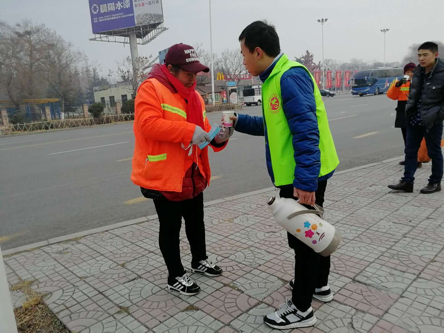 1月6日,经济管理学院团总支“企航”志愿服务协会30余名志愿者在黄河西路(濮上园至绿色庄园路段)开展了“关爱环卫工,寒冬送温暖”志愿服务活动。