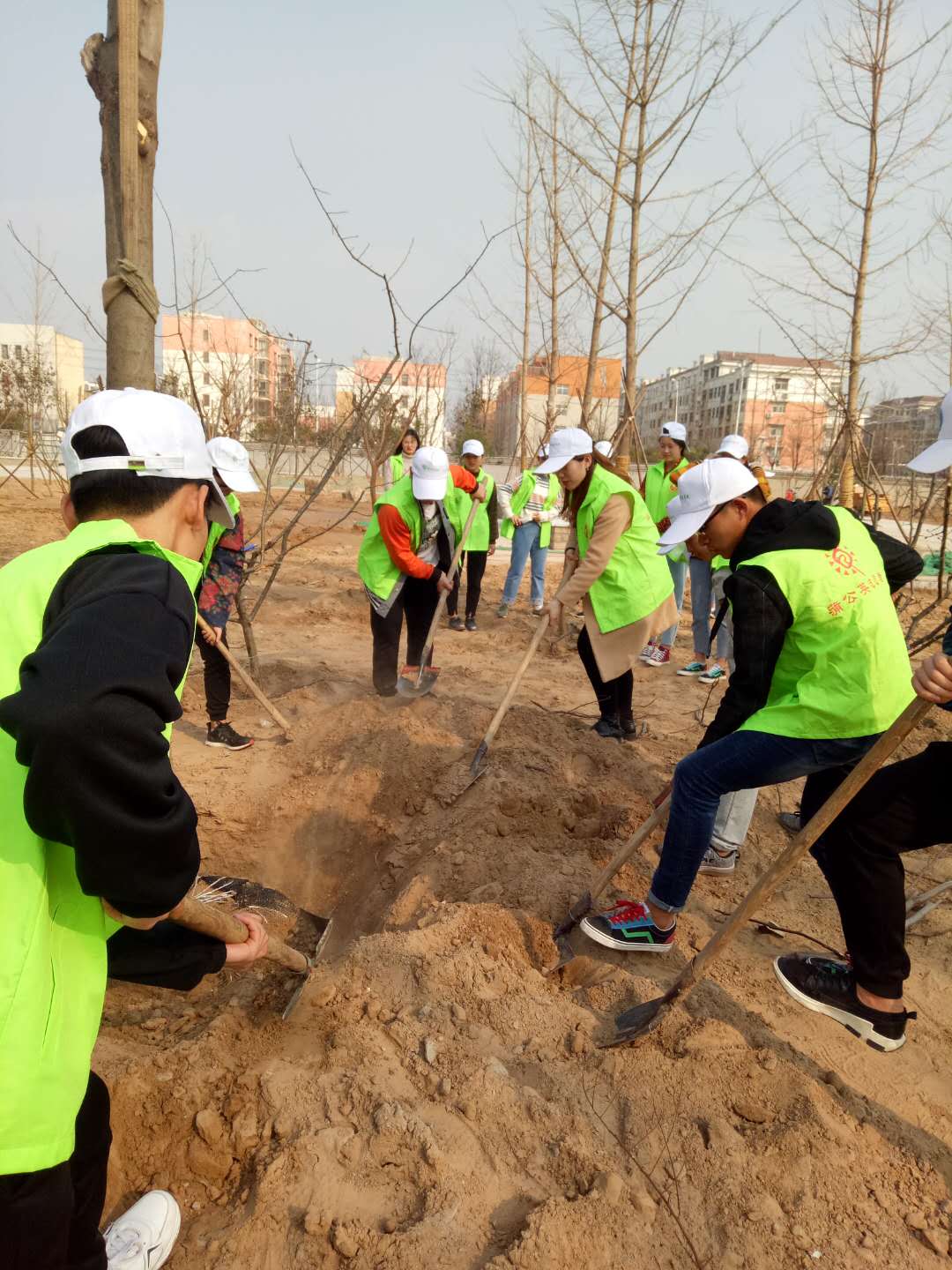 同学们个个热情高涨,带着大揪、水桶等工具为大树培土浇水,活动现场到处回荡着的欢声笑语,种下了一棵棵绿色的希望。此次活动的开展,以植树绿化为载体,增强了同学们的环保意识,美化了环境,美化了心灵,进一步营造出人人宣传绿色、保护绿色的浓厚氛围。